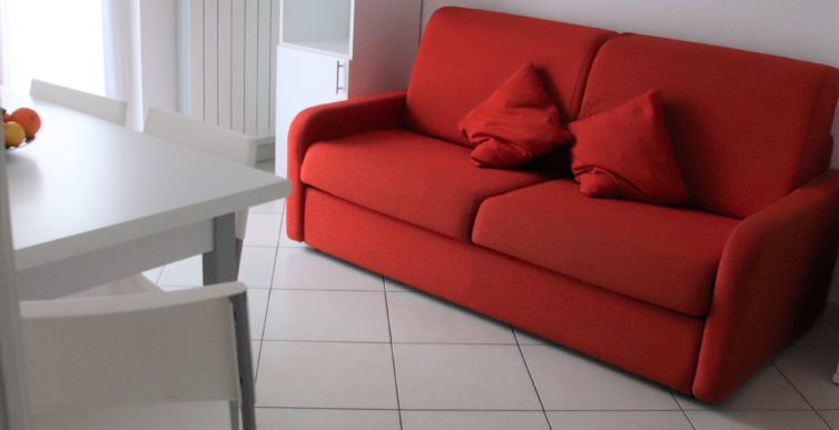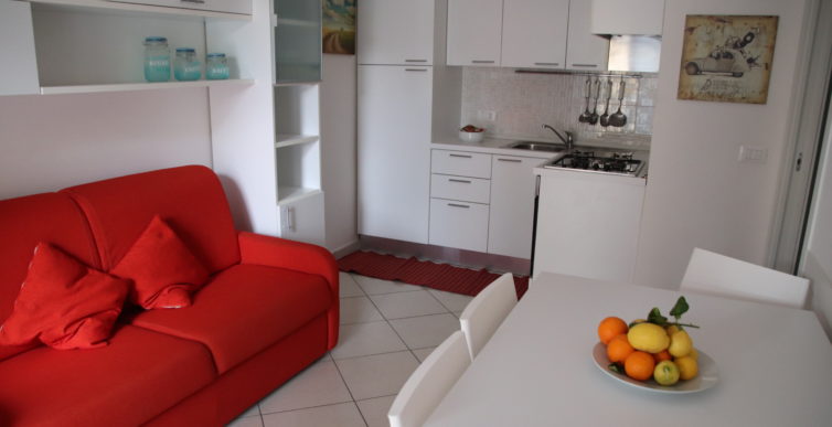 Ingresso, angolo cottura soggiorno, bagno con doccia e lavatrice, ampia camera, cinque posti letto, balcone.