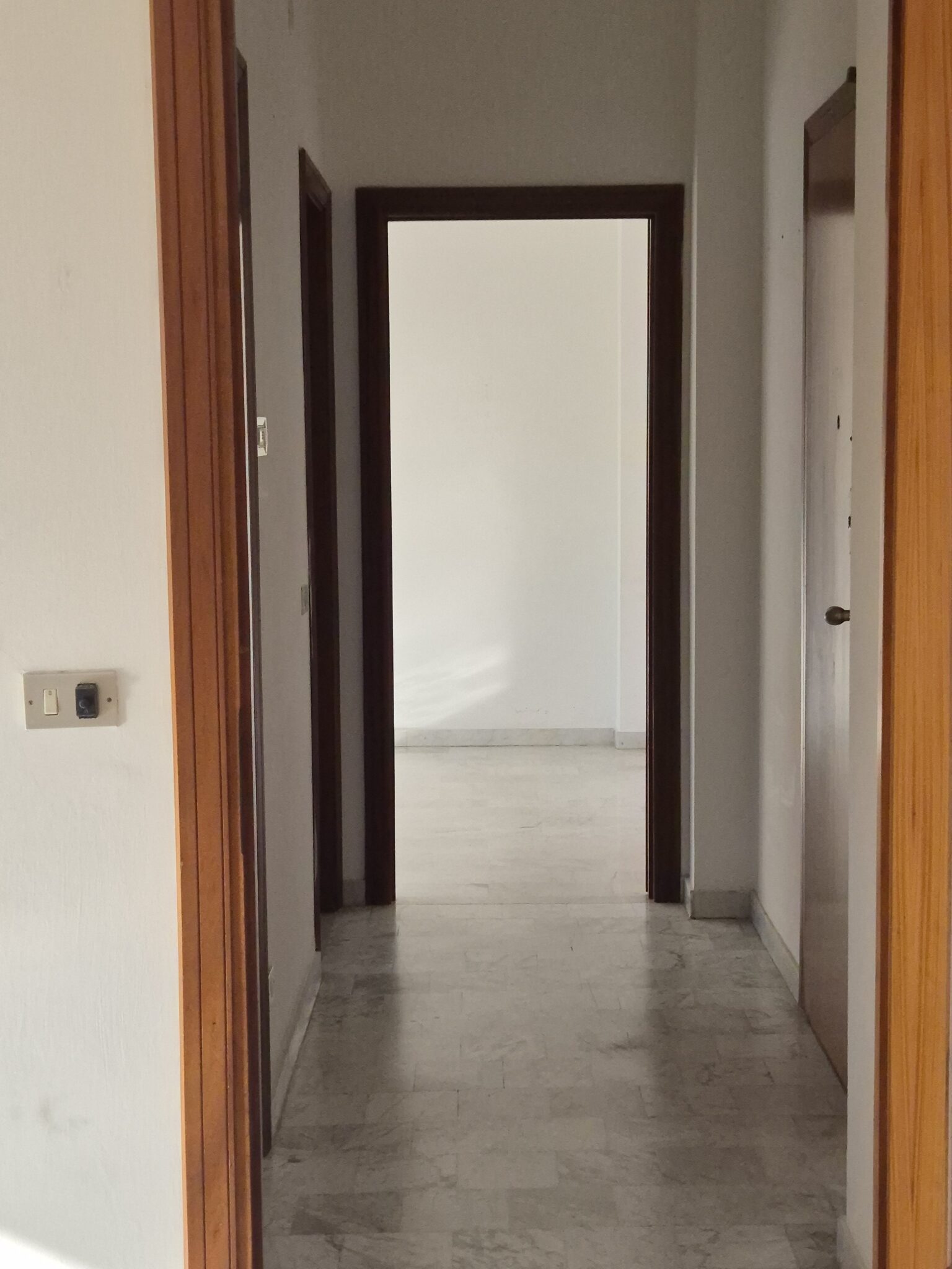 Le finiture sono sobrie e senza tempo: pavimentazione in marmo chiaro, infissi ampi che valorizzano la luminosità degli spazi e tonalità neutre che rendono l’immobile versatile e facilmente personalizzabile. Il balcone, profondo e ben sfruttabile, rappresenta un naturale prolungamento della zona giorno, ideale per momenti di convivialità all’aperto.